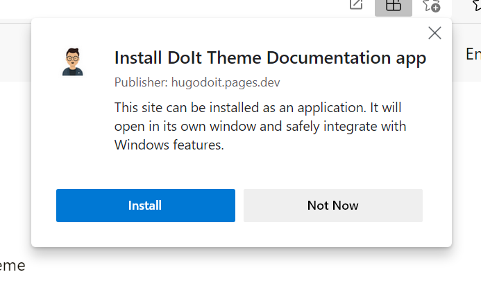These features may be useful for some websites, such as this documentation site. But it does not make much sense to turn a personal blog into a PWA. In the end, it all depends on your choice, and the DoIt theme will provide this feature for you anyway.